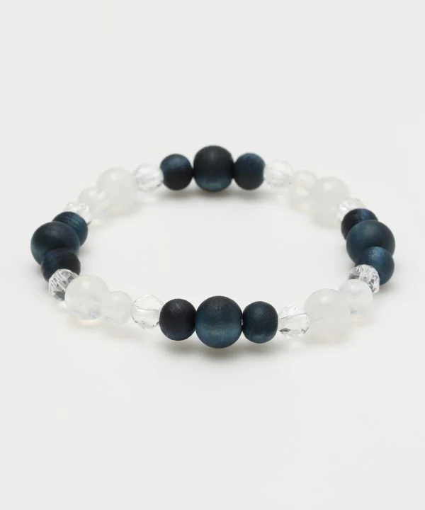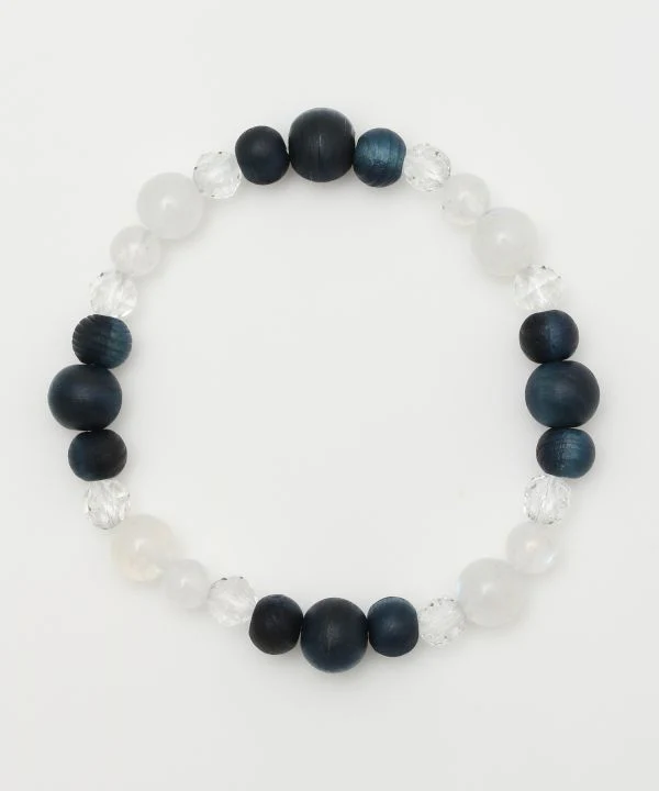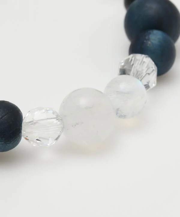 AIZOME Bracelet cyprès teint indigo x pierre de lune arc-en-ciel