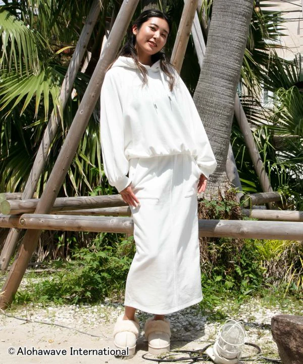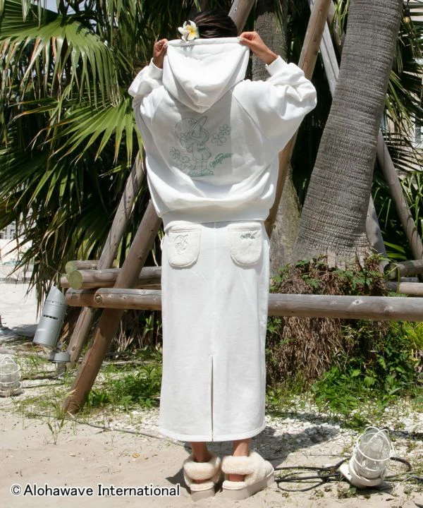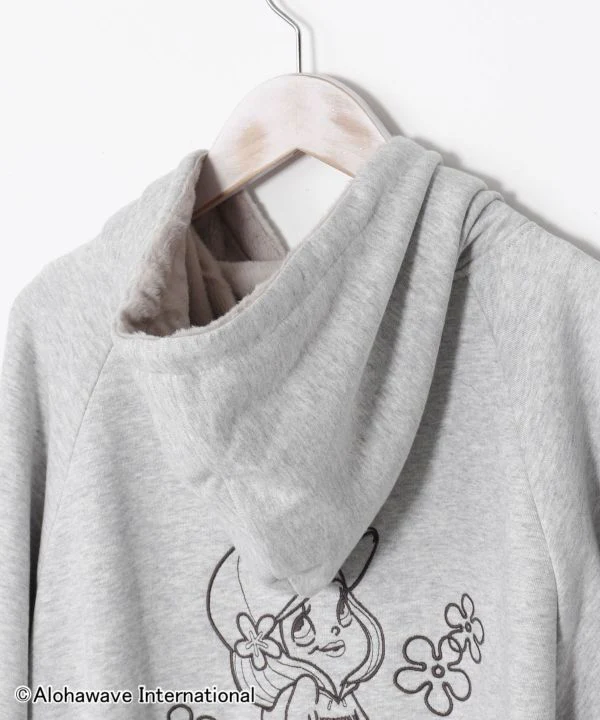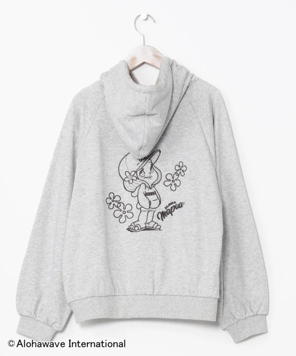 Kahiko Collaboration x Aoha Mapua. Ce haut est né d’une collaboration avec Mapua, une blonde platine passionnée de surf et de mode. Son design accrocheur est orné d’une broderie HAWAÏ sur le devant et d’une broderie Mapua au dos. La capuche est doublée d’une matière duveteuse qui sublimera votre cou.