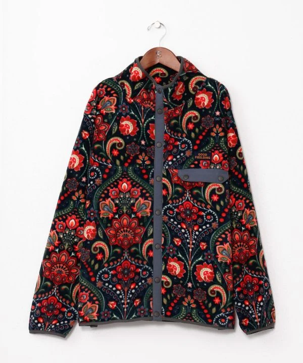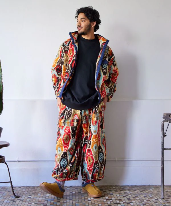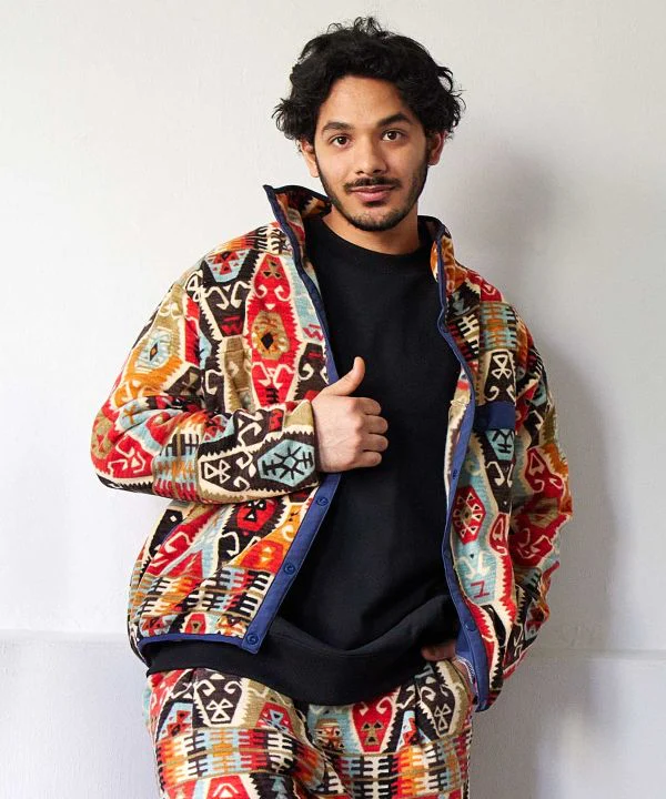 Amina Projet collaboratif x grn. Chaude et légère, cette veste polaire douce pour homme est idéale au quotidien. Une pièce fonctionnelle qui s’enfile et se retire facilement lors des périodes de fortes variations de température et des activités de plein air. Son motif, inspiré de la « Ceinture des Tapis », une zone de production de tapis sur la Route de la Soie, séduit par son originalité. Elle est dotée de poches sur la poitrine et sur les côtés.