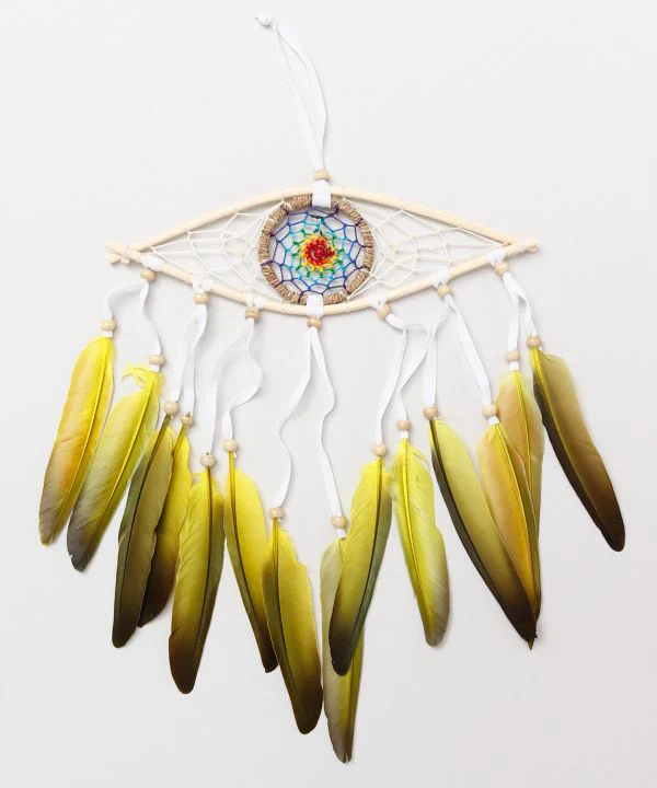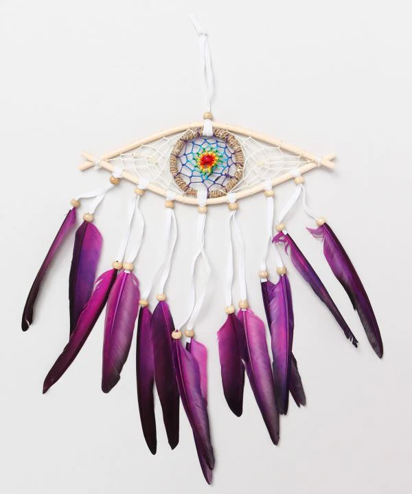 Cet attrape-rêves est doté d’un cadre en bambou en forme de globe oculaire. Il est destiné à « vous protéger des cauchemars et vous porter chance ».