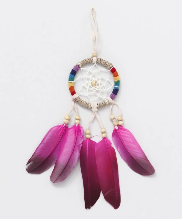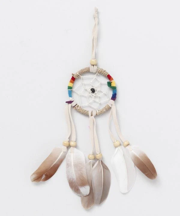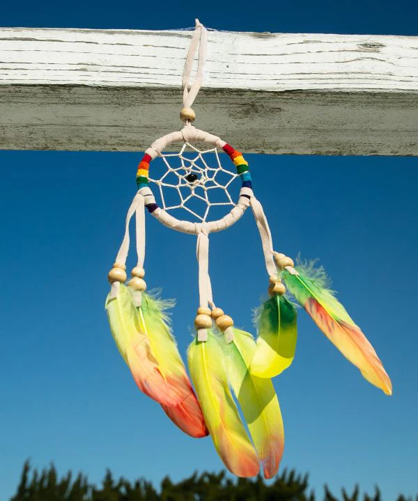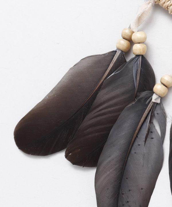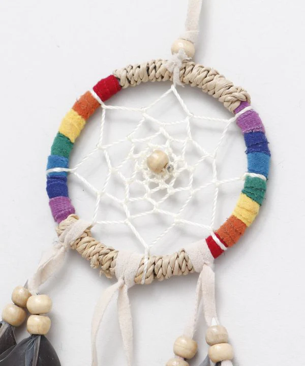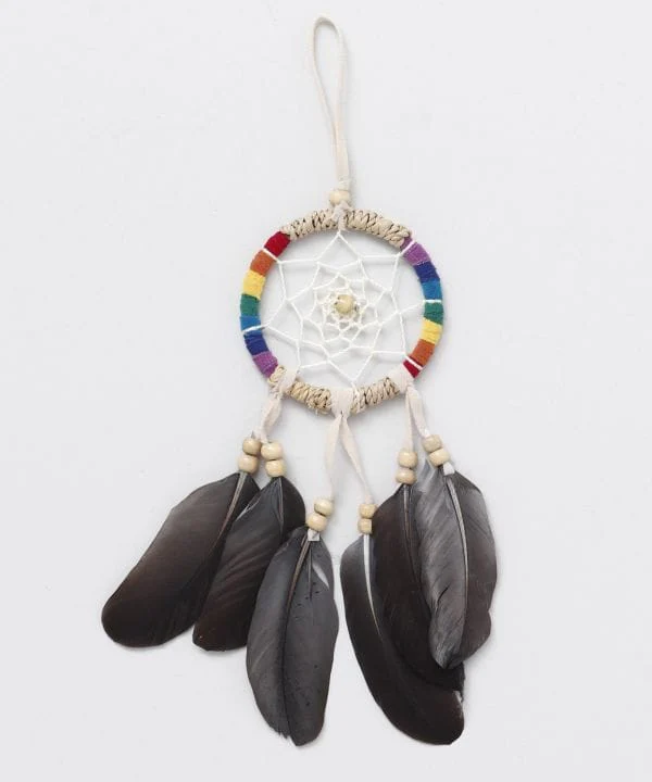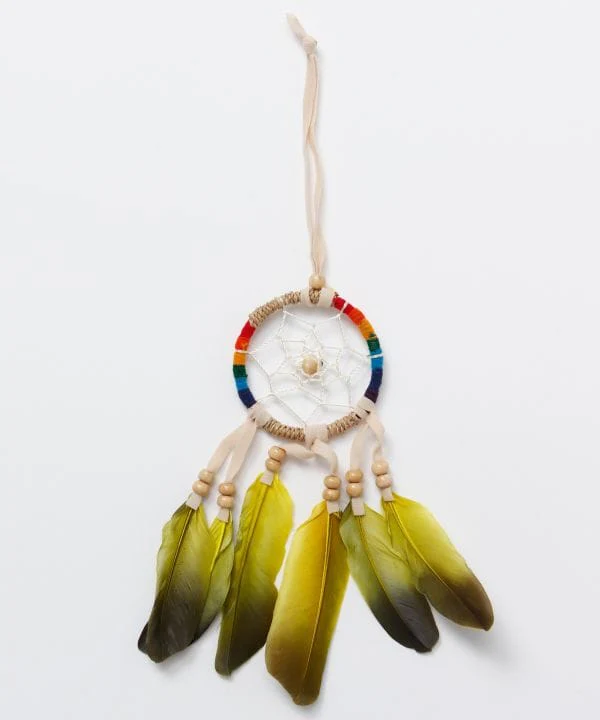 Les plumes aux couleurs vives de cet attrape-rêves attirent tous les regards. C’est un ornement traditionnel amérindien pour éloigner le mal et a pour signification de « protéger contre les cauchemars et apporter de bons rêves ».