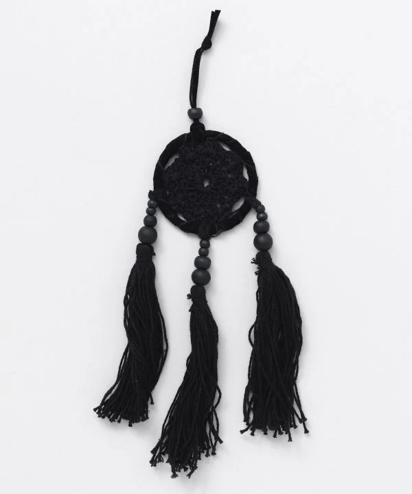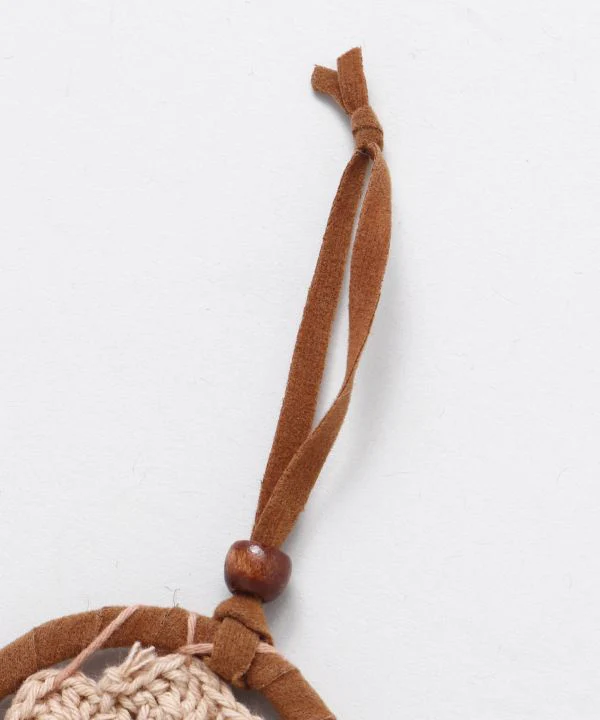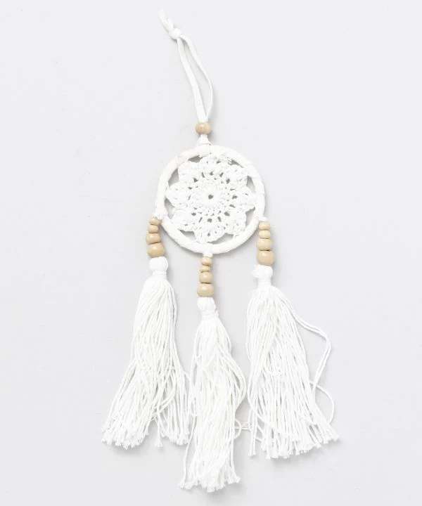 Ce capteur de rêves unicolore est composé de perles en bois et d’une partie à pompon. C’est un ornement amérindien destiné à éloigner le mal et qui a pour signification de « protéger contre les cauchemars et apporter de bons rêves ».