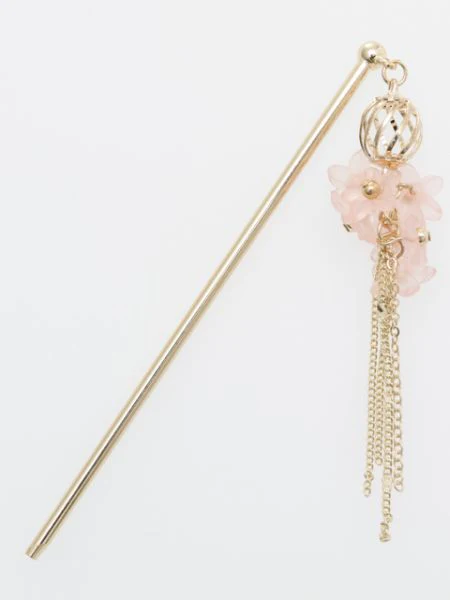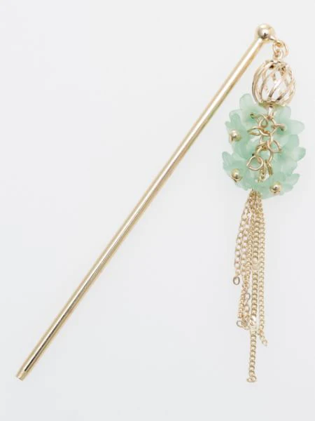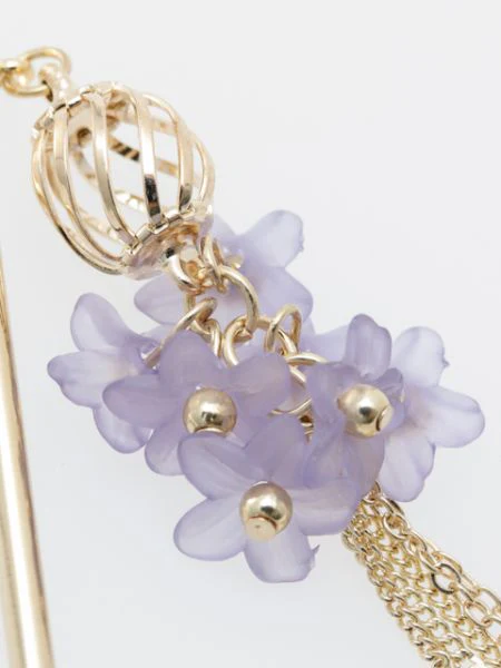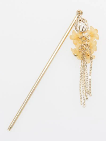 Cette épingle à cheveux en métal présente une collection de nombreuses petites fleurs à la texture douce comme du verre dépoli.La frange de la chaîne qui pend de la racine des cheveux lui donne une silhouette féminine.