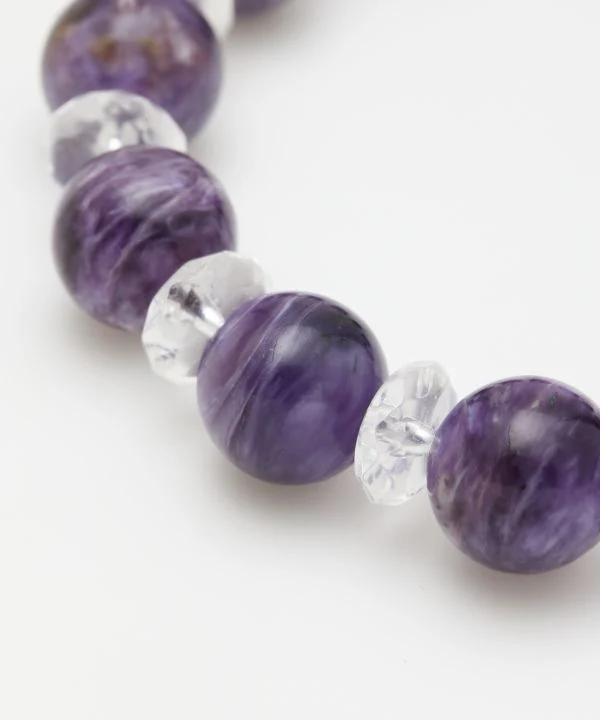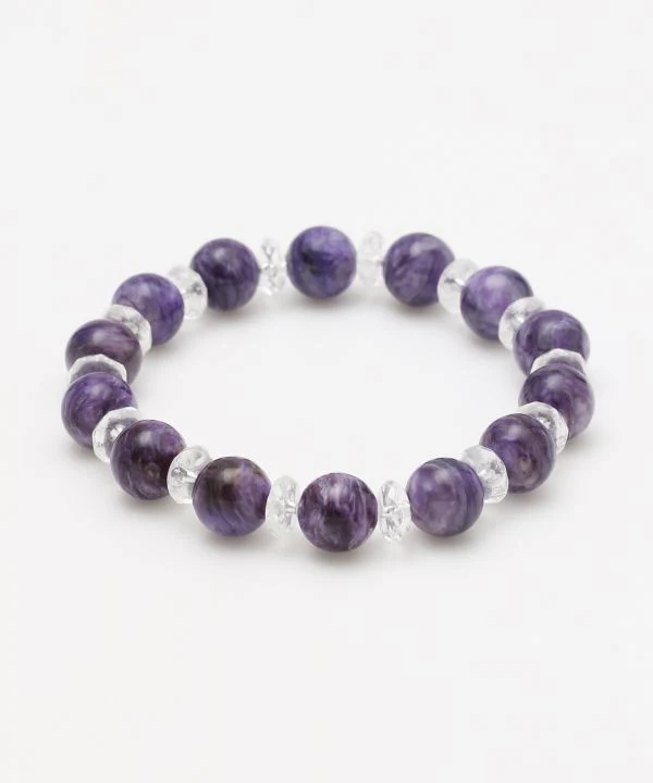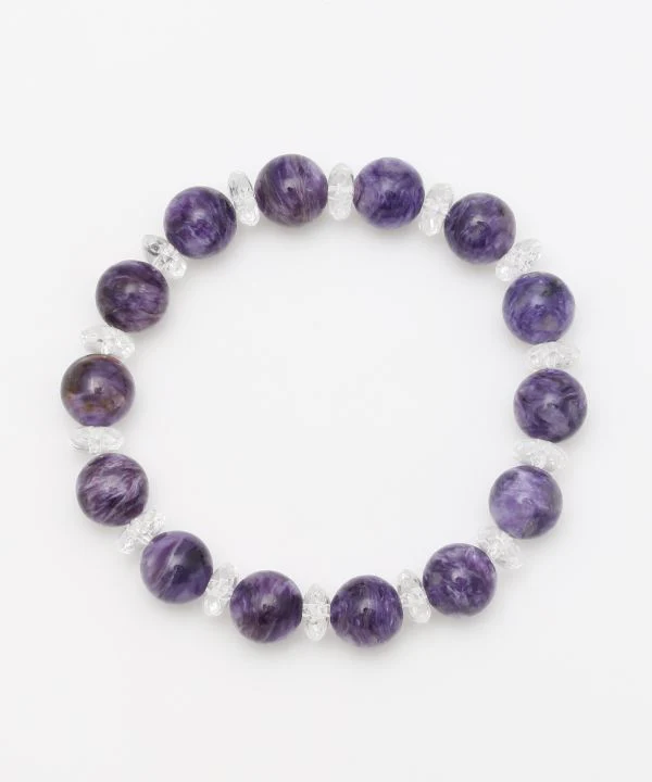 Un bracelet en pierre naturelle de haute qualité alliant charoite violet foncé et cristaux scintillants. Il / elle colore magnifiquement et dirige la féminité ◎