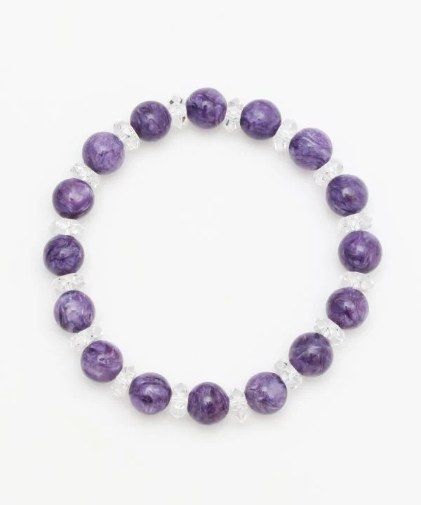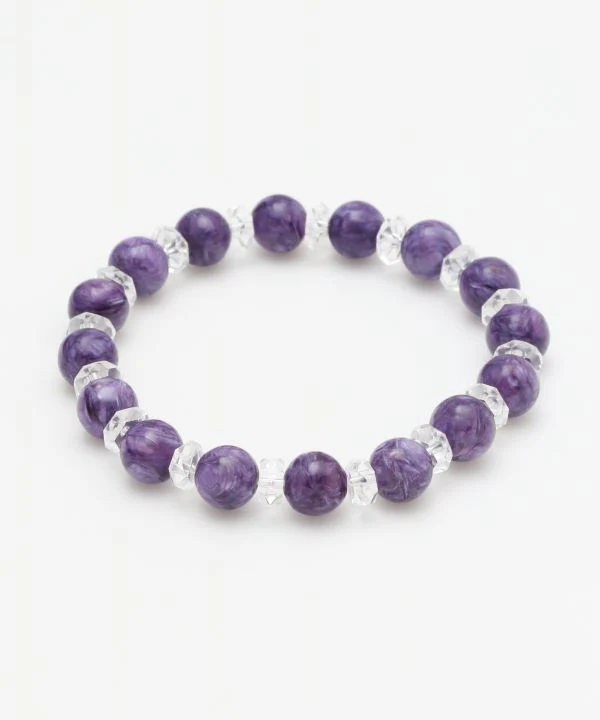 Un bracelet en pierre naturelle de haute qualité alliant charoite violet foncé et cristaux scintillants. Il / elle colore magnifiquement et dirige la féminité ◎