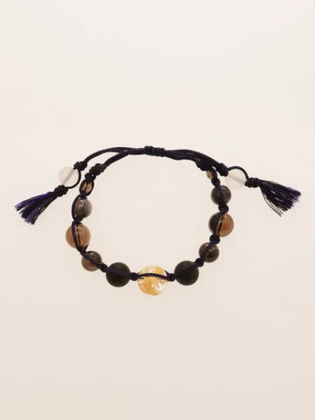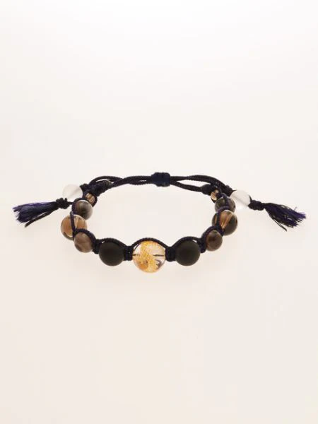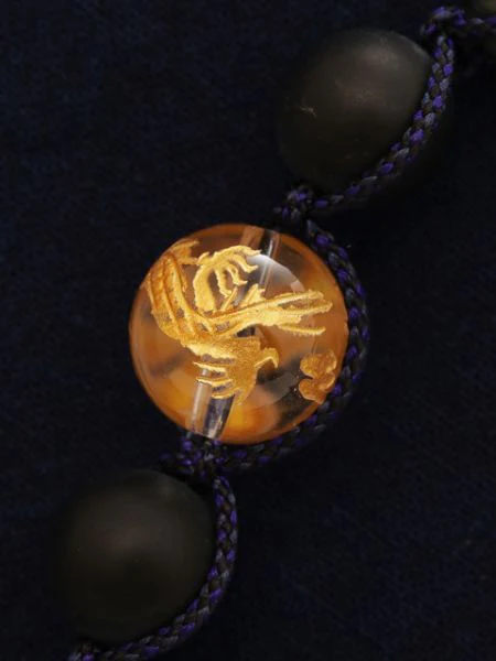 金龍の彫刻がされた水晶を中心に、京都組紐で編み上げた上品で力強い印象のブレスレット。天眼石などの天然石をバランスよく配置した和テイストな御守りアクセサリーです.