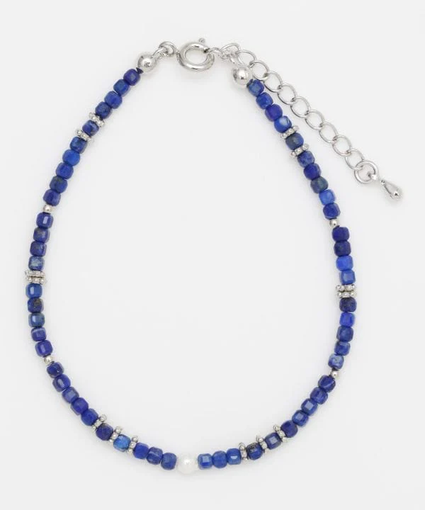 Bracelet en perles de lapis-lazuli de forme carrée