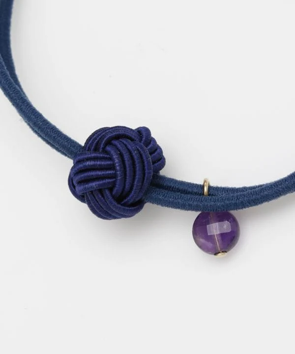 Bracelet élastique pour cheveux avec mizuhiki awajidama et pierres naturelles taillées.