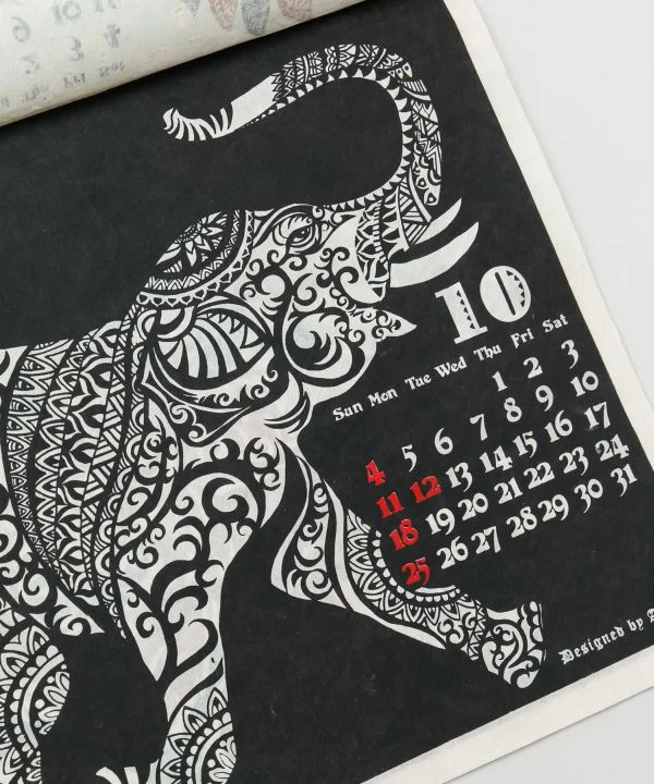 Ce calendrier met en scène des animaux vêtus d’un motif tribal qui exprime la vitalité de la vie. Son design délicat, puissant et fluide est si attrayant qu’il semble pouvoir bouger à tout moment. Laissez la puissance des animaux devenir votre propre force. Ce calendrier, réalisé en papier artisanal népalais, est empreint de chaleur. Les fêtes représentées sont inspirées des fêtes japonaises.