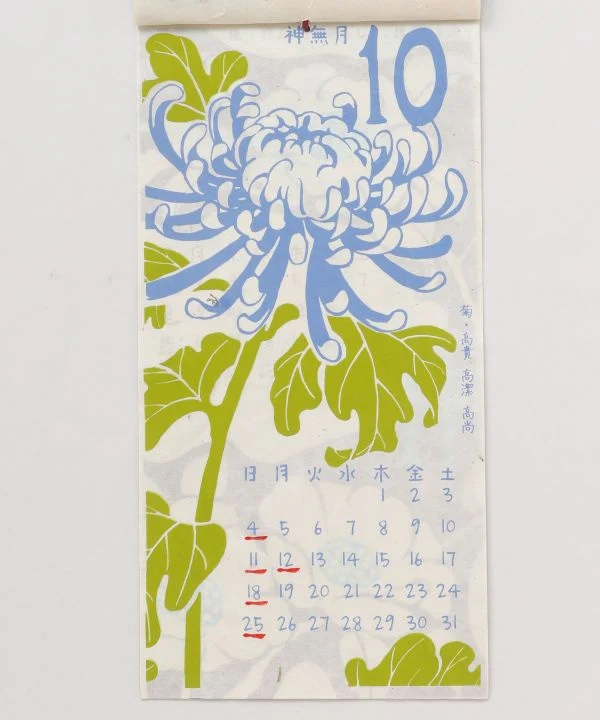 Ce calendrier japonais moderne illustre, mois par mois, la floraison de jolies fleurs à chacune des quatre saisons du Japon. En le décorant, vous créerez un espace élégant et raffiné. Vous apprécierez la texture douce du papier fait main. Les fêtes représentées sont inspirées des jours fériés japonais.