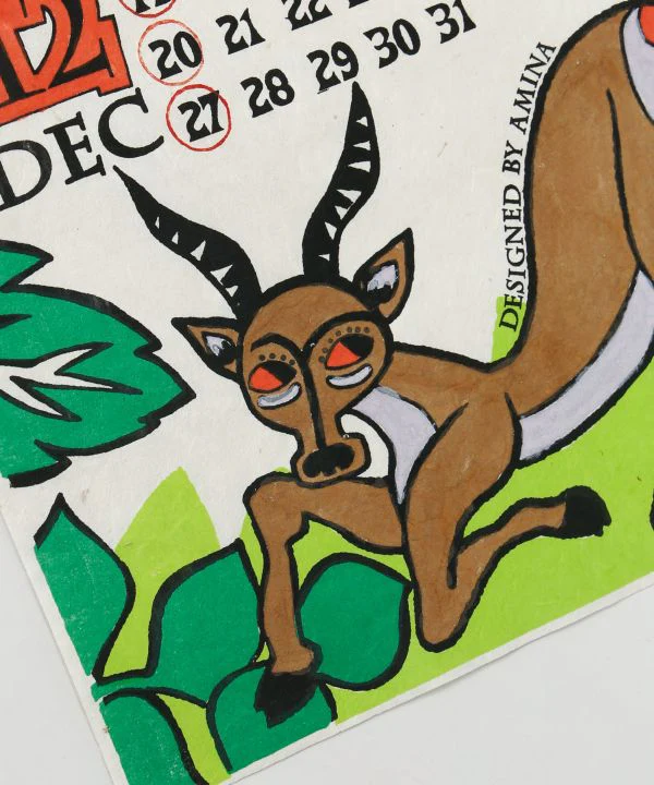 Ce calendrier sur papier népalais artisanal dépeint avec humour les animaux vivant en Afrique. Inspiré de l’art africain contemporain de la peinture Tingatinga, les lignes et les couleurs vives, ainsi que les expressions uniques des animaux, sont les points forts de ce calendrier. Il est parfait pour une pièce moderne et lui confèrera une touche artistique. Les fêtes représentées sont inspirées des fêtes japonaises.