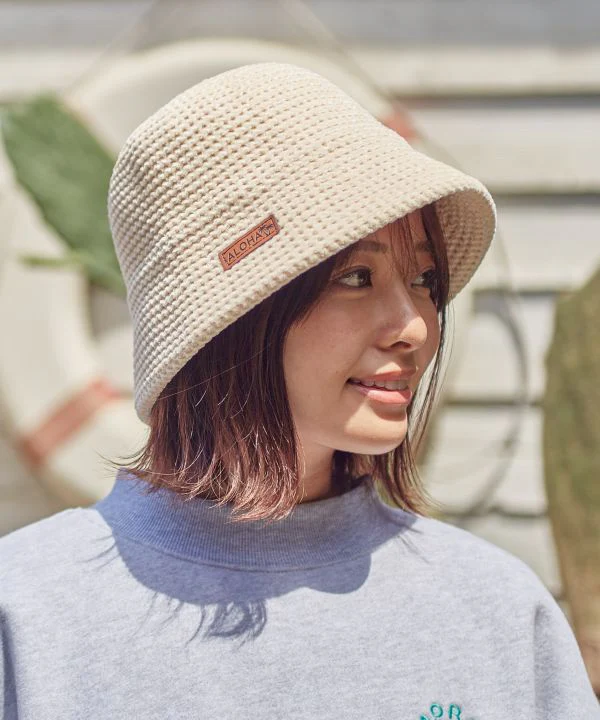 Chapeau en matière tressée chaude. La couleur calme permet de l’associer facilement à une variété de tenues. L’étiquette en cuir est un point clé. La taille peut être ajustée.