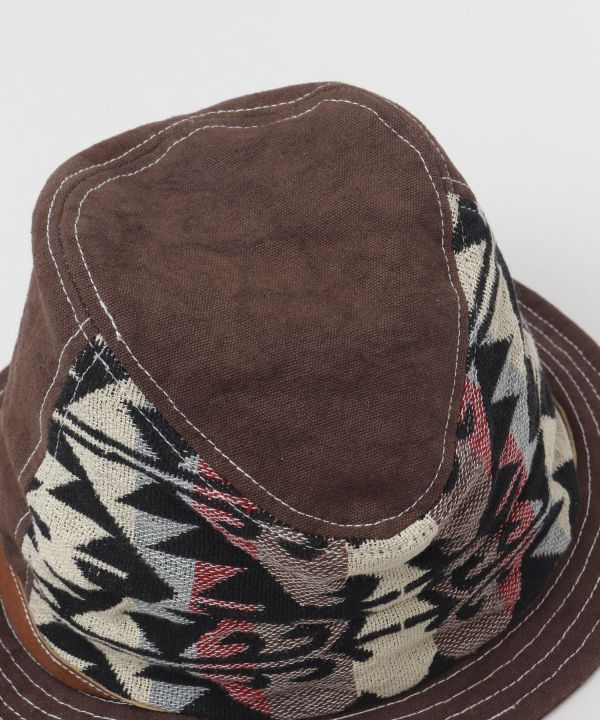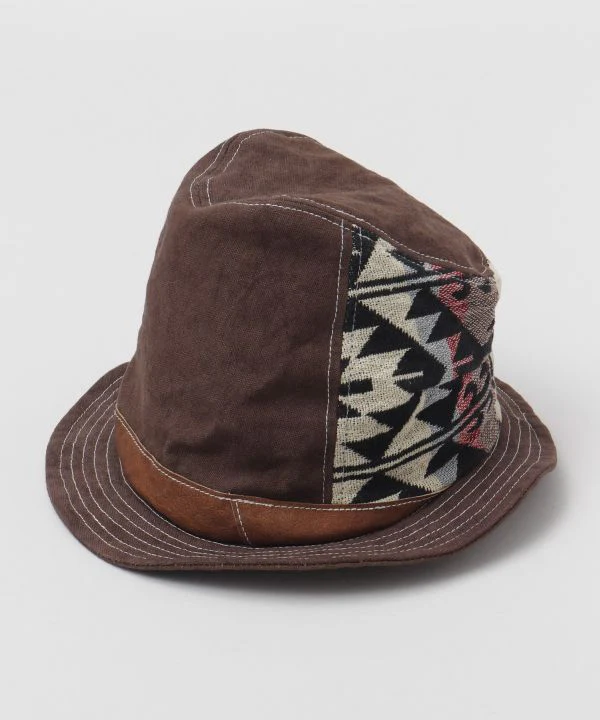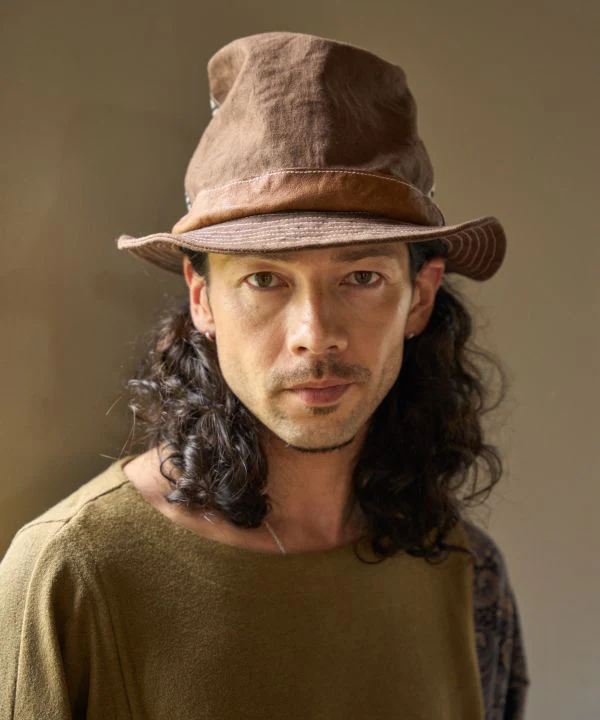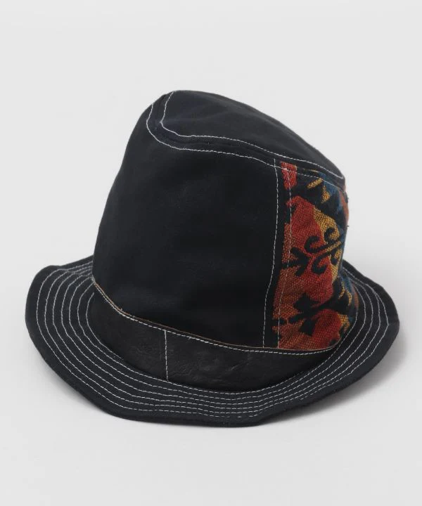 Ce chapeau en cuir de buffle et jacquard est fabriqué dans un village au cœur des montagnes du Népal. Le jacquard intègre un motif connu sous le nom de gueule de loup, souvent utilisé dans le Kilim, et destiné à protéger du mal. Cet article donne une impression différente selon l’angle sous lequel vous le regardez.