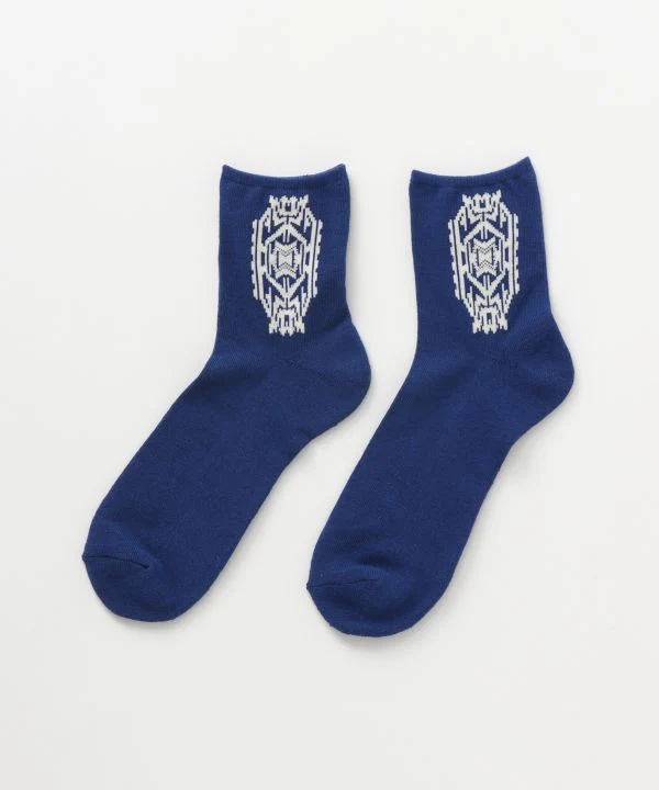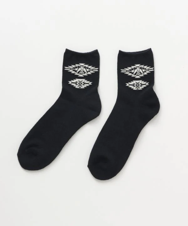 Chaussettes de longueur moyenne avec un motif natif monochromatique simple mais distinctif. Série NOMADY originale. Les semelles épaisses coussinées offrent un excellent confort. Recevez l’énergie de la nature de vos pieds.