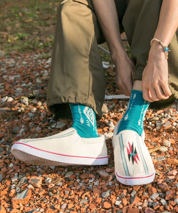 Chaussettes de longueur moyenne avec un motif natif monochromatique simple mais distinctif. Série NOMADY originale. Les semelles épaisses coussinées offrent un excellent confort. Recevez l’énergie de la nature de vos pieds. *Chaque article ici est fabriqué à la main par des artisans un par un. Par conséquent, la forme et la couleur peuvent varier légèrement. […]