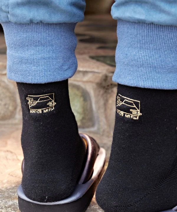 La série « YUNOSUSUME » s’inspire des bains publics et des sources chaudes japonaises. Le tissu à poils épais permet à ces chaussettes chaudes Tabi Shoes de s’adapter en toute sécurité autour de vos pieds. Conçues pour donner l’impression que vous portez des chaussettes tabi, les couleurs sont inspirées des sources chaudes de diverses régions. Le dos est orné d’une broderie du mont Fuji inspirée d’une peinture murale d’un bain public.