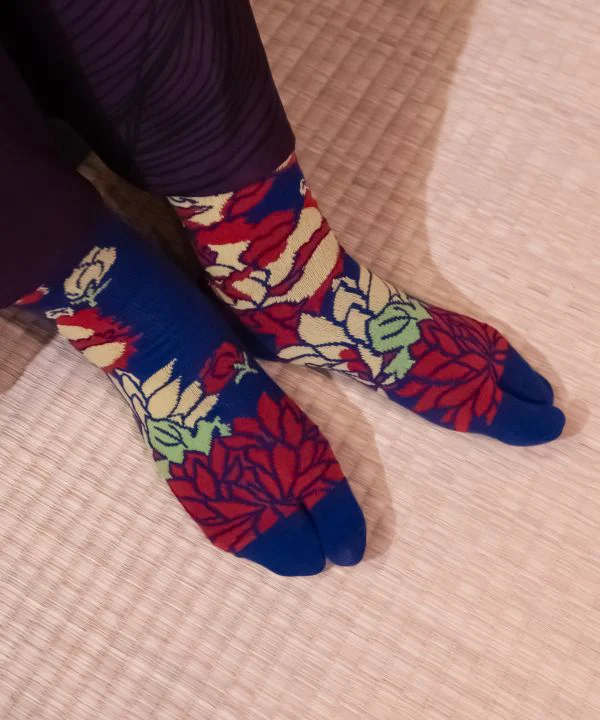 Chaussettes Tabi aux fleurs colorées accrocheuses. Le confort unique des chaussettes Tabi qui s’adaptent parfaitement au pied et sont faciles à enfiler.