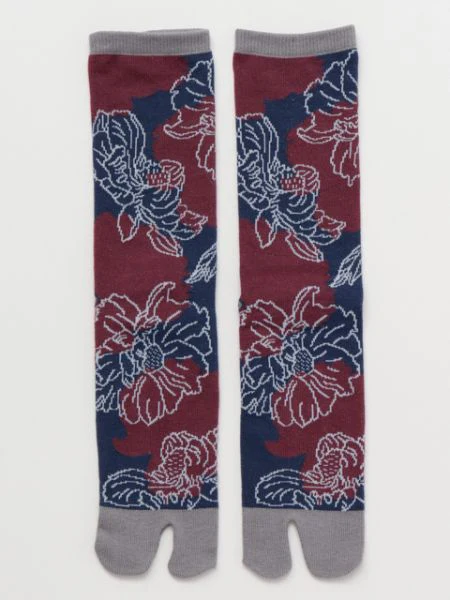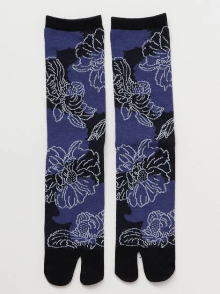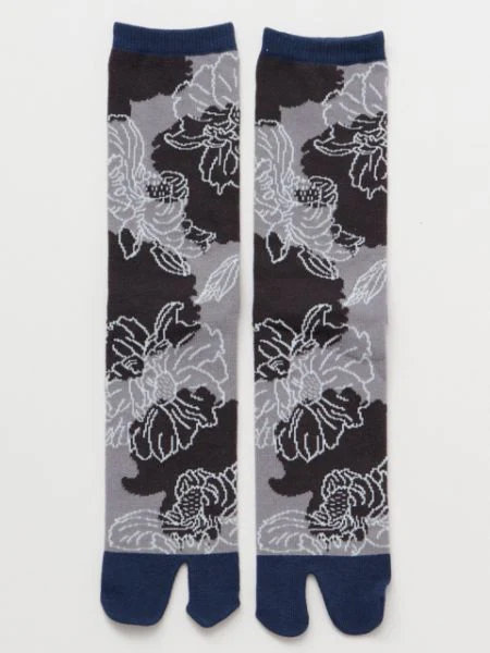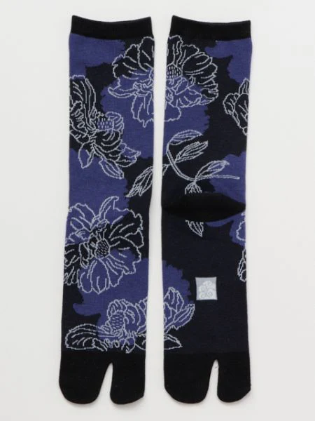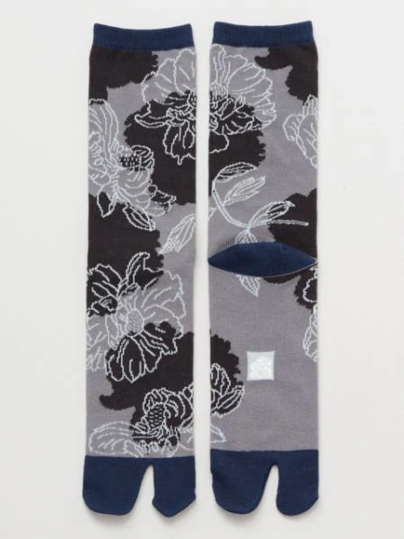 Le langage des fleurs de pivoine est « la modestie ». Ces chaussettes pour hommes ont un design moderne et chic dessiné dans un style de dessin au trait. Ces chaussettes Tabi sont fabriquées dans la préfecture de Nara, un important centre de production de chaussettes au Japon.