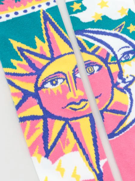 Chaussettes mi-longues aux motifs originaux dans un design pop. Différents motifs sur les côtés gauche et droit ornent avec audace vos pieds.