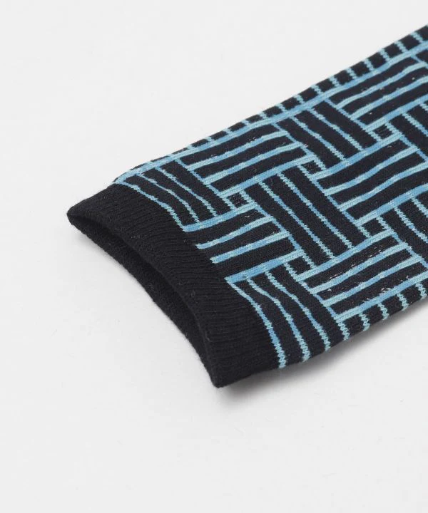 Une paire de chaussettes Tabi au motif komon japonais redessiné. Le motif à trois coins est considéré comme porte-bonheur en raison de son nombre impair.