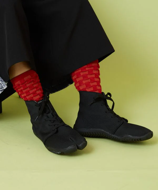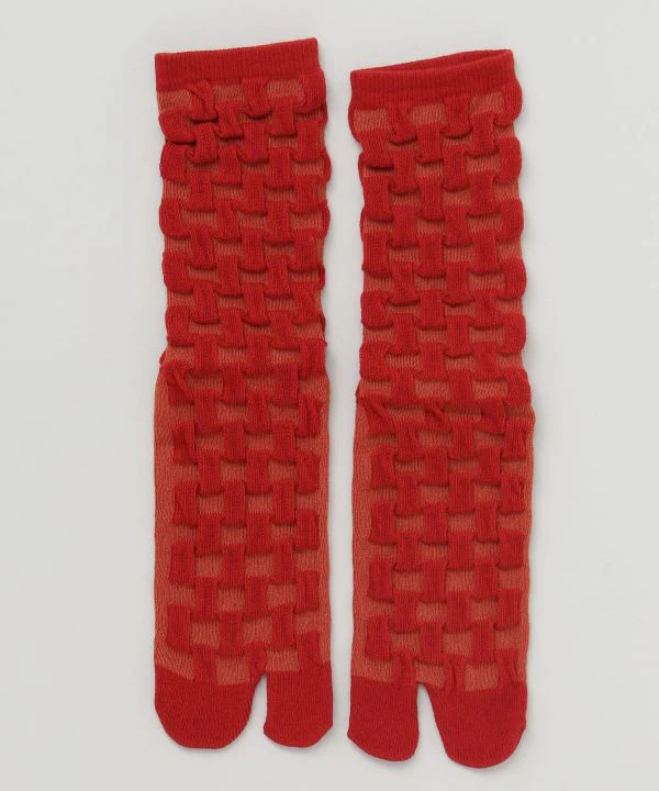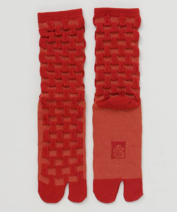 Chaussettes Tabi à motif à carreaux traditionnel, tissées en relief 3D. Le contraste des couleurs souligne leur élégance et elles s’accordent parfaitement avec des sandales et des tongs. Le motif à carreaux symbolise la prospérité et le développement, et ces chaussettes sont réputées pour porter chance.