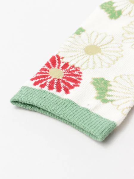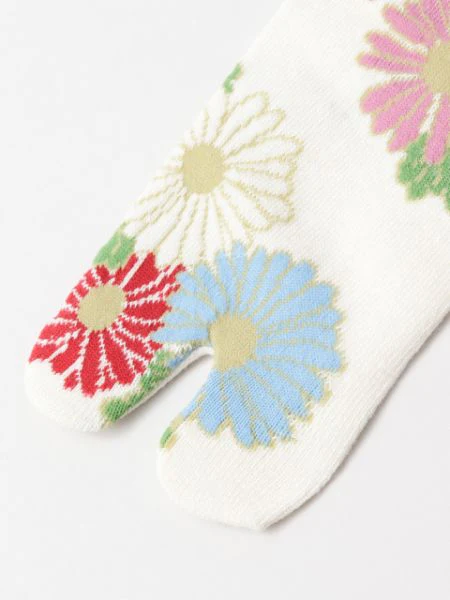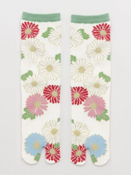 Chaussettes Tabi à bout fendu fabriquées dans la préfecture de Nara. Motif de petits chrysanthèmes mignons et fleuris.