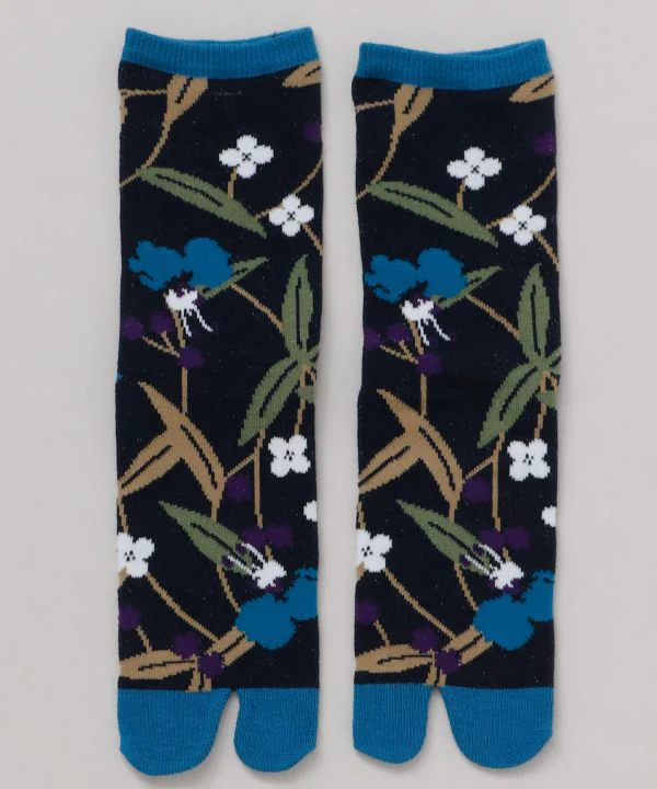 Ces chaussettes tabi ont une impression élégante avec un design de petites fleurs fleurissant en été.