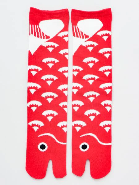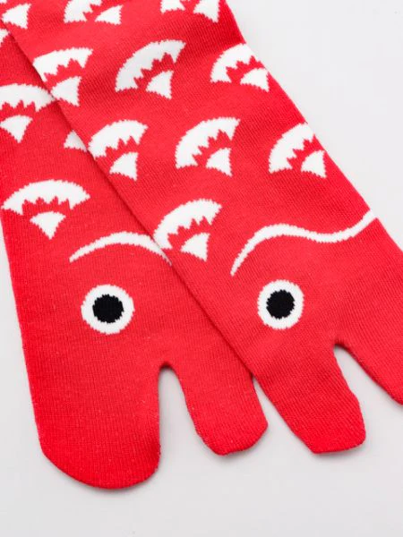 めでたい魚、美味な高級魚として知られる「鯛」 。日本では魚の王様とされています。七福神の布袋様が小脇に抱えているのも鯛。おめでたい時に履くのもおすすめの紳士用足袋型くつしたです◎