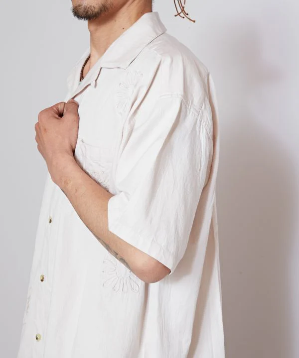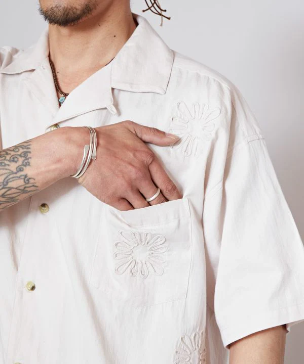 Ce haut est orné d’une subtile broderie en velours côtelé. Fabriqué en coton indien léger et légèrement brillant, il est facile à porter au quotidien grâce à ses couleurs basiques. Ce haut à col ouvert offre une coupe décontractée et possède une poche poitrine. *Chaque article ici est fabriqué à la main par des artisans […]