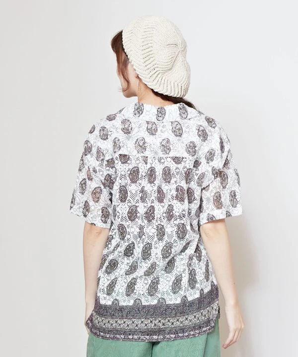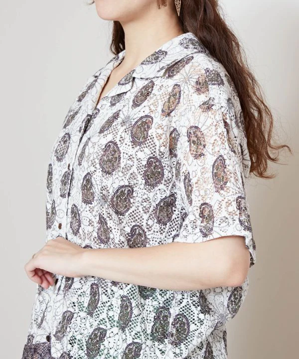 Chemise femme à imprimé cachemire indien et motifs floraux. Sa dentelle tendance et décontractée est remarquable. Ce modèle peut être porté en superposition ou en manteau tissé, et peut être assorti à d’autres pièces.