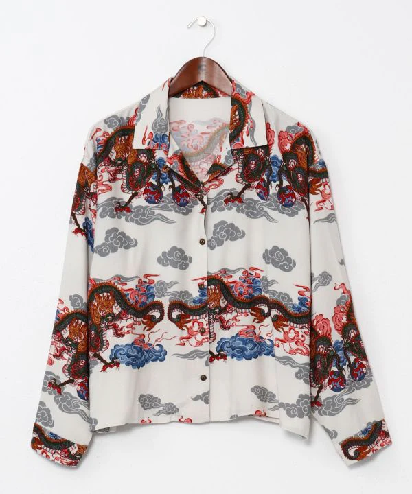Cette chemise à manches longues présente une bordure ornée d’un motif saisissant, évoquant une peinture tibétaine. Les motifs de bon augure représentant des nuages, des dragons, des tigres et des yaks s’harmonisent parfaitement, et la matière en rayonne offre une douceur incomparable. Dragon : symbole de puissance, divinité protectrice, incarnation du tonnerre, porte-bonheur et de protection […]