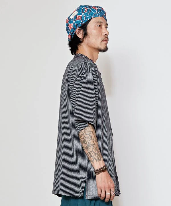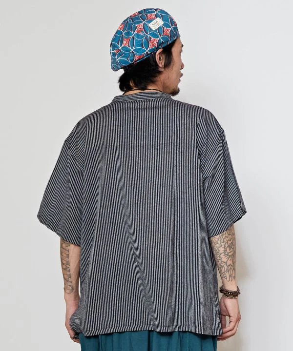 Chemise basique pour homme avec col montant. Tissu rayé tissé avec un aspect et un toucher texturés en coton népalais qui devient plus confortable au fur et à mesure que vous le portez. Poche poitrine. *Chaque article ici est fabriqué à la main par des artisans un par un. Par conséquent, la forme et la […]