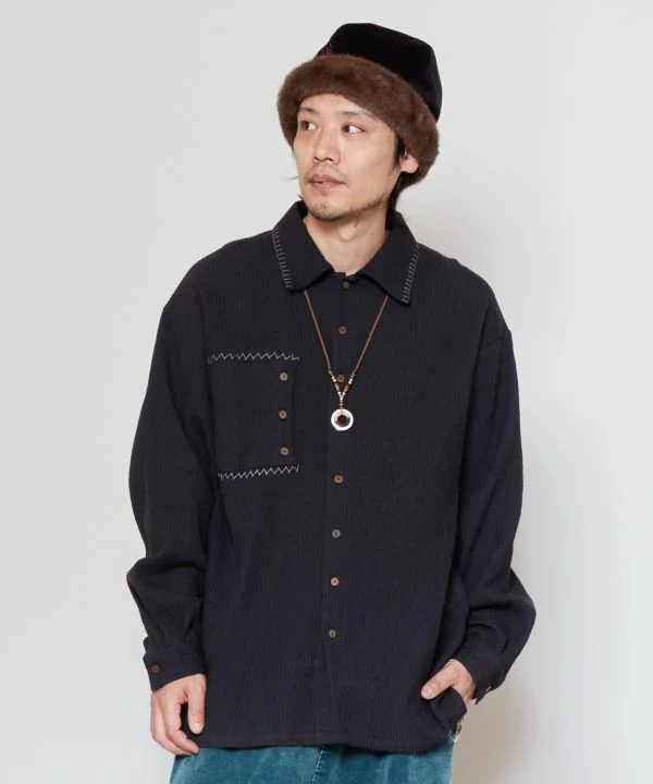 Chemise homme en coton confortable. Le design tridimensionnel présente une texture intéressante. La poche sur la poitrine est inspirée des vêtements de travail des bergers. La couture de couverture sur le col et les poches est un élément clé. Une chemise basique que vous voudrez avoir au moins une fois. taille M. *Chaque article ici […]