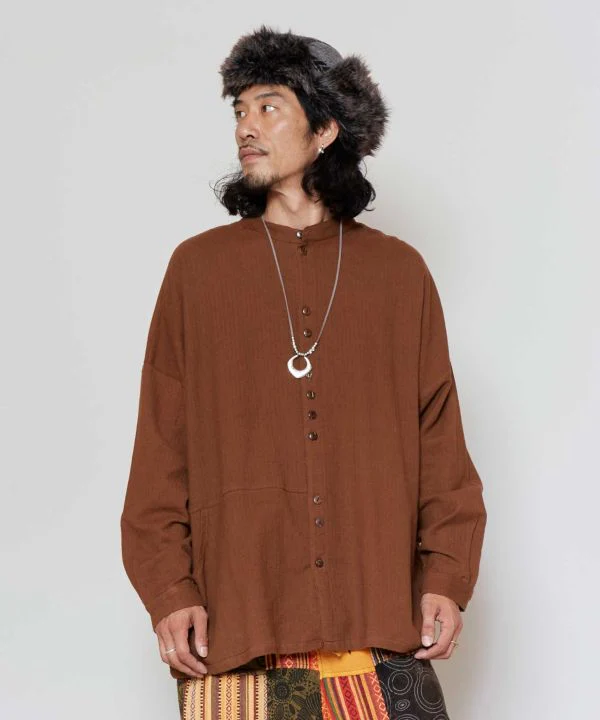 Cette chemise deviendra sans aucun doute votre préférée au fil des saisons. Elle présente une silhouette sophistiquée avec la texture rustique du coton népalais confortable. Le secret de la popularité de cette chemise réside dans ses boutons en noix de coco aléatoires et sa taille exquise qui lui permet d’être portée par n’importe qui. Elle est conçue pour être unisexe. Diverses techniques telles que des fentes, des poches, etc. sont intégrées dans la couture.