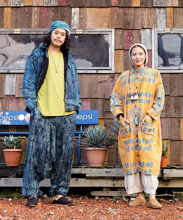 Cette chemise oversize est imprimée de motifs de constellation et délavée à l’acide pour lui donner un aspect texturé. Il peut être porté ample, et est également très utile comme pièce tissée avec le devant ouvert. Appréciez le changement de dressing selon les changements de saisons. Veuillez apprécier la texture du matériau fabriqué au Népal […]