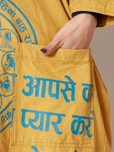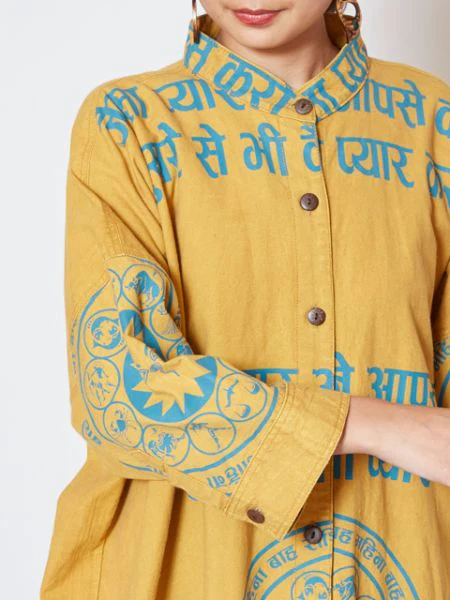 Cette chemise oversize est imprimée de motifs de constellation et délavée à l’acide pour lui donner un aspect texturé. Il peut être porté ample, et est également très utile comme pièce tissée avec le devant ouvert. Appréciez le changement de dressing selon les changements de saisons. Veuillez apprécier la texture du matériau fabriqué au Népal et la texture unique faite à la main qui diffère d’une pièce à l’autre.