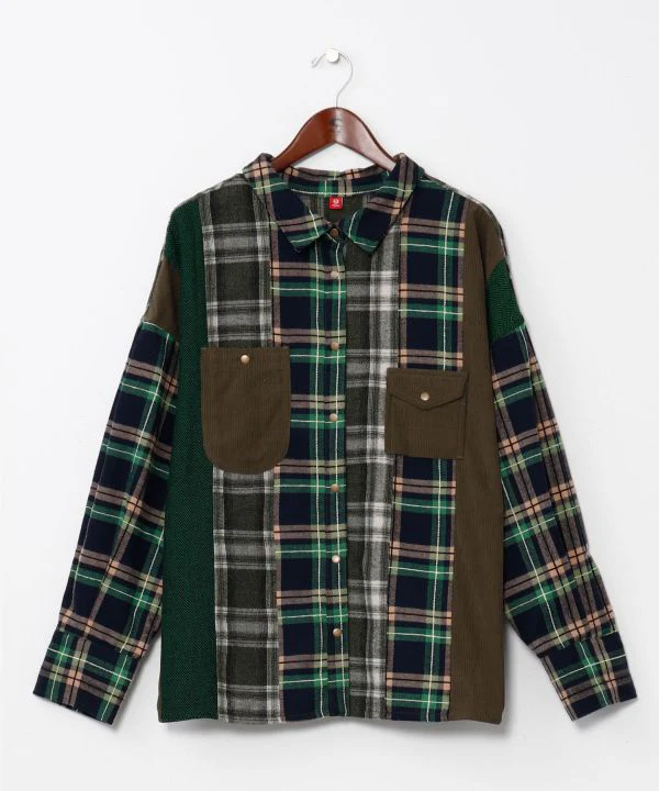 Chemise patchwork en velours côtelé