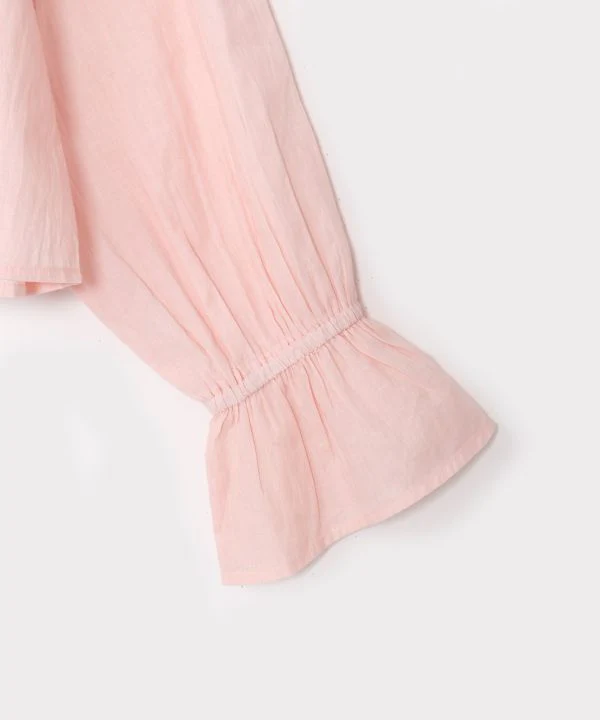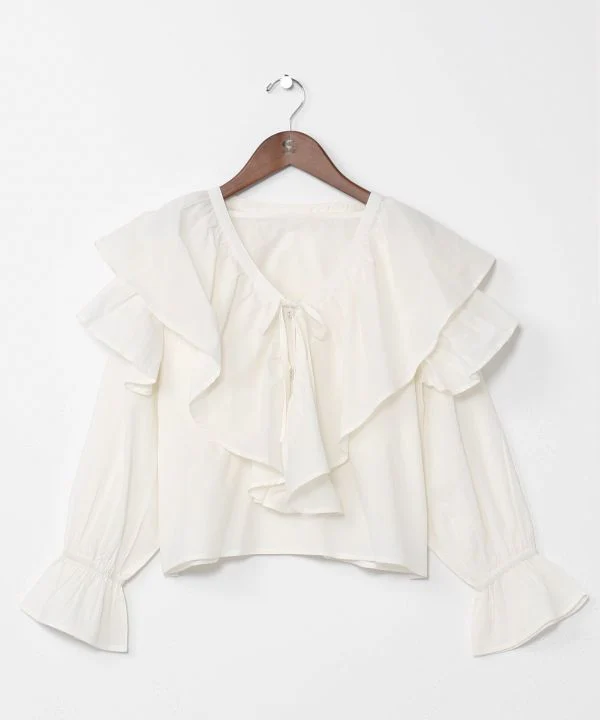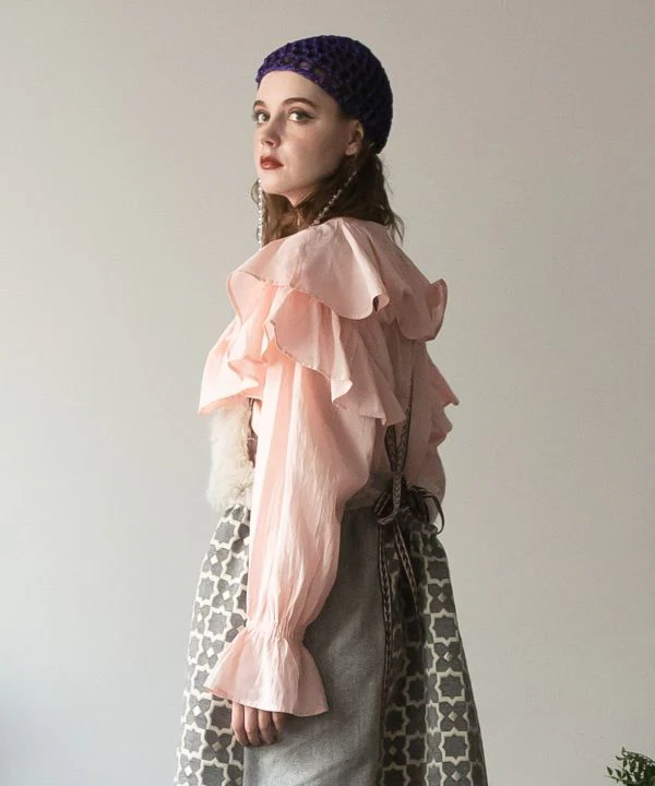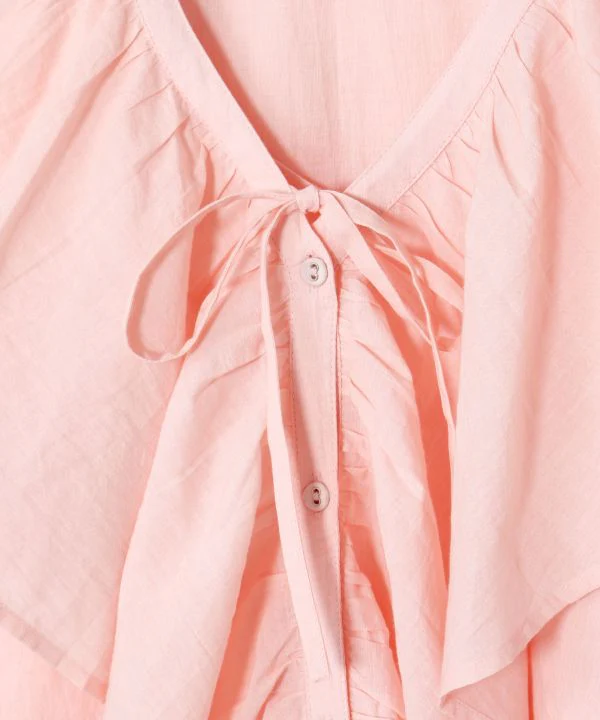 Chemisier en coton indien doux et confortable. Sa coupe courte et son tissu fin le rendent idéal pour les superpositions. Modèle double-face avec col amovible. Son col volumineux et ses volants aux manches en font un modèle parfaitement coordonné. Sa couleur vive sublimera votre tenue.