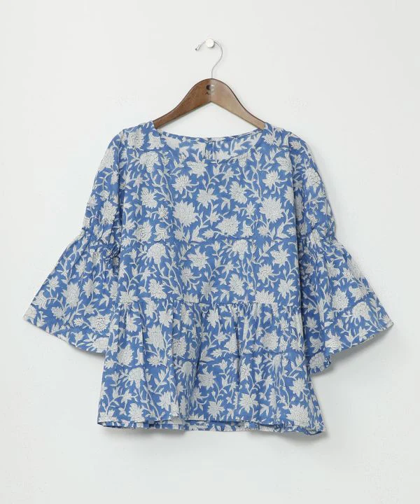 Ce haut tendance à imprimé bloc est confectionné en coton indien léger, dont les motifs varient selon les couleurs. Les coutures froncées sur les manches créent un effet duveteux et complètent parfaitement le look. Les manches longues protègent du soleil. *Chaque article ici est fabriqué à la main par des artisans un par un. Par […]
