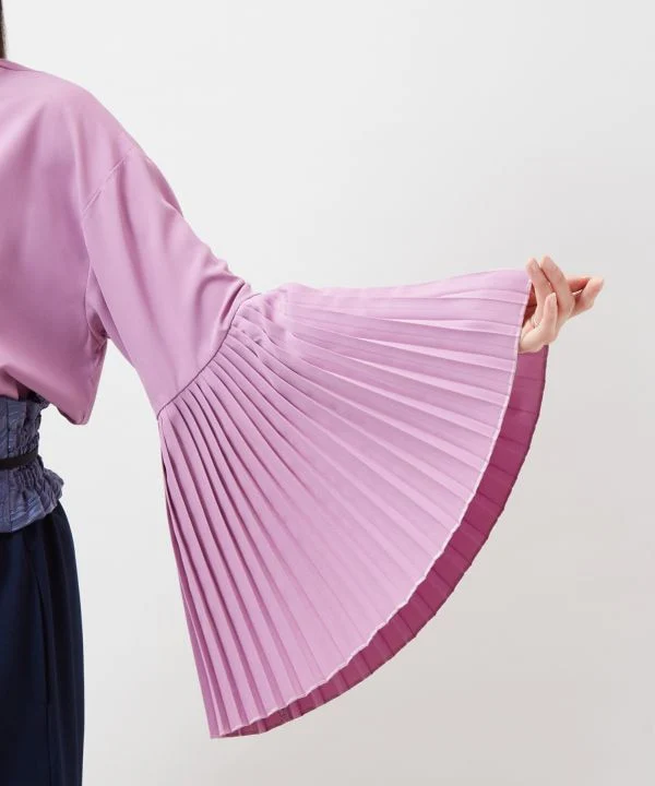Ce haut est doté de poignets plissés. Il peut être porté comme haut d’intérieur. Les plis des manches ressortent lorsqu’il est porté avec une robe. Son col arrondi permet de l’assortir facilement à toutes les tenues.