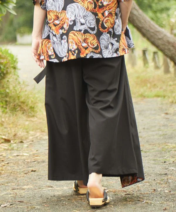 Ce pantalon présente un design ludique avec des motifs de peinture japonaise représentant des tigres, des faucons et des chevaux dispersés sur la doublure. Le tissu recouvert et la finition plissée donnent à ce pantalon l’apparence d’une combinaison de hakama et de kimono. Associez-le à une chemise ou un haori du même imprimé pour compléter une tenue décontractée de style japonais. Matière en polyester pour un confort léger. Parfait pour un usage unisexe, ce produit est conçu pour tout le monde.