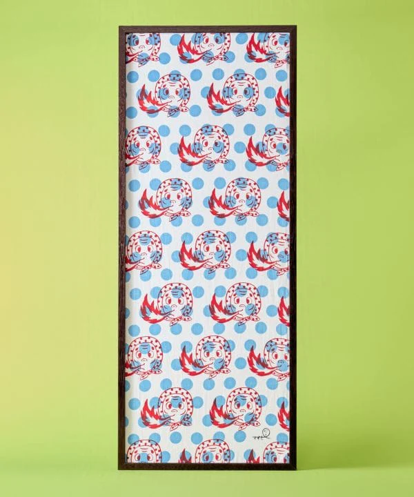 Fruit d’une collaboration avec l’artiste Hyottoko Suzuki, qui crée une fusion fascinante entre tradition et modernité, ce tenugui est inspiré de son œuvre « Hyottoko stove ». Son design ludique convient aussi bien à un usage quotidien qu’à la décoration intérieure.