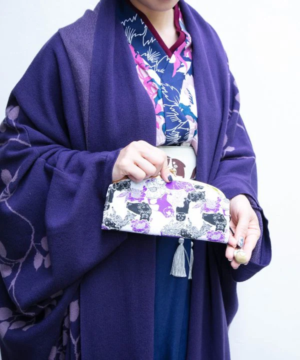 Portefeuille long pouvant contenir des billets sans se plier. Nombreux rangements pour cartes. Le motif représente de jolis chats et des fleurs. La douce teinte pêche et la teinte violette mature lui confèrent un look élégant et moderne. *Chaque article ici est fabriqué à la main par des artisans un par un. Par conséquent, la […]