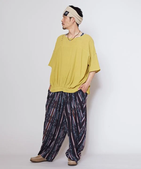 Pantalon pour homme en tissu jacquard d’Inde du Sud. La silhouette ample de cette robe met parfaitement en valeur le haut. Sa texture confortable et son tissage aérien et brut en font une pièce rustique et attachante. *Chaque article ici est fabriqué à la main par des artisans un par un. Par conséquent, la forme […]