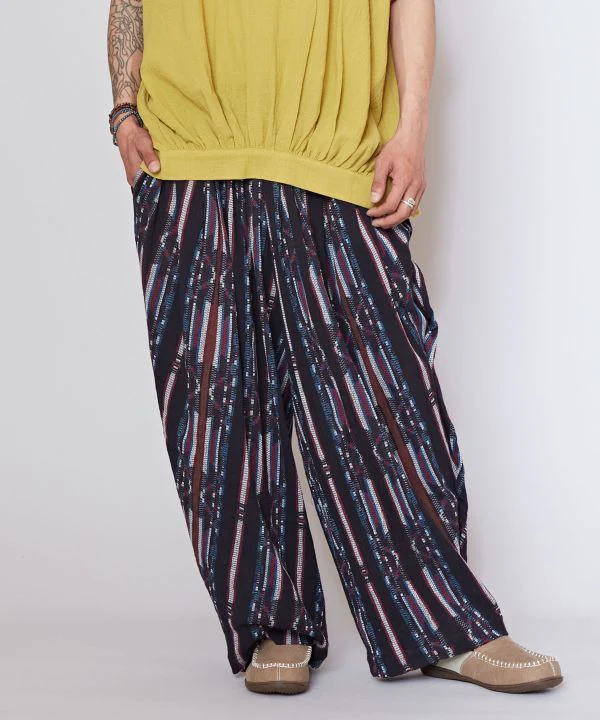 Pantalon pour homme en tissu jacquard d’Inde du Sud. La silhouette ample de cette robe met parfaitement en valeur le haut. Sa texture confortable et son tissage aérien et brut en font une pièce rustique et attachante.