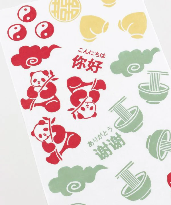 La série de serviettes à main « Country Pattern » présente des motifs de différents pays. Le motif chinois représente des pandas, des nouilles ramen et des petits pains à la viande cuits à la vapeur. Il est recommandé comme souvenir ou comme cadeau.
