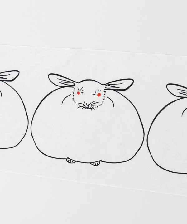 Serviette Tenugui avec un lapin peint par Chosui Yabu, un peintre de la fin de la période Edo. Le lapin bien formé est très adorable. Il est recommandé comme décoration intérieure sur le mur ou comme New Cadeau de l’année à vos proches.,