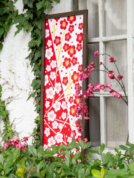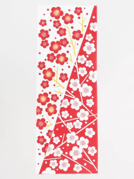 Le langage des fleurs de prunier est « l’élégance » et « l’intégrité ». Les couleurs propices du rouge et du blanc sont parfaites pour les occasions de fête. Comme un mouchoir pour s’essuyer les mains. Il peut être utilisé comme emballage pour les bouteilles de saké, etc., ou comme emballage de boîte à lunch. Il peut également être utilisé pour décorer une pièce comme tapisserie d’intérieur. Il peut être utilisé de diverses manières selon vos idées.,