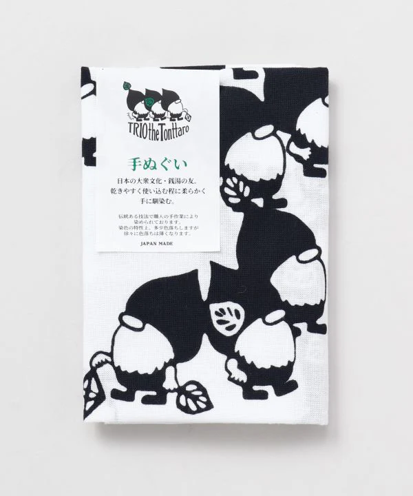 Cette serviette à main tenugui est conçue avec le motif de « Tonttu », une fée qui vit dans la cabine de sauna.