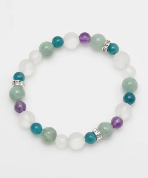 AIZOME Bracelet cyprès teint indigo x pierre de lune arc-en-ciel